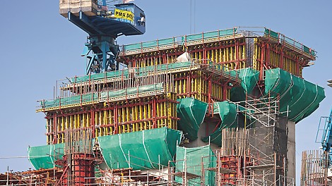 Again, PERI provides a solution to solve our problem "Cores need to climb a head of the slabs". Otherwise we are unable to realise the cycle times required to be on time. Also, PERI formwork helps us to reduce the manpower needed on site. Only 16 carpenters per tower are handling the formwork provided by PERI, making this a very lean operation.
